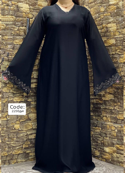 نفذت الكميةعباية خليجي حرير اسود خروج حريمى كود 229