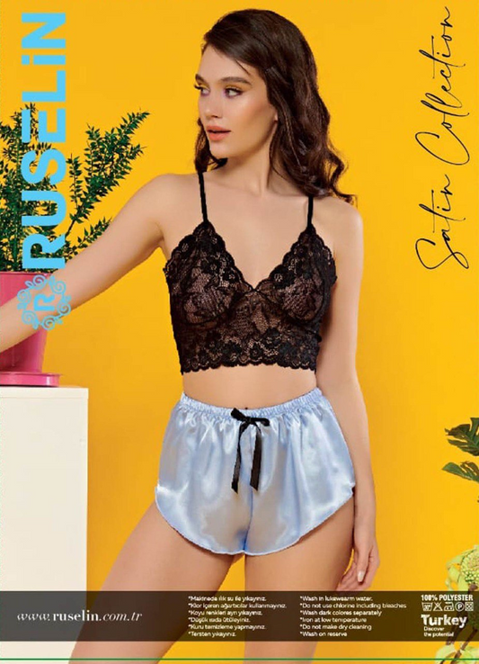 نفذت الكميةﻻنجري تركي 2 قطعة ستان ناعم و مثير 12082من لبسي