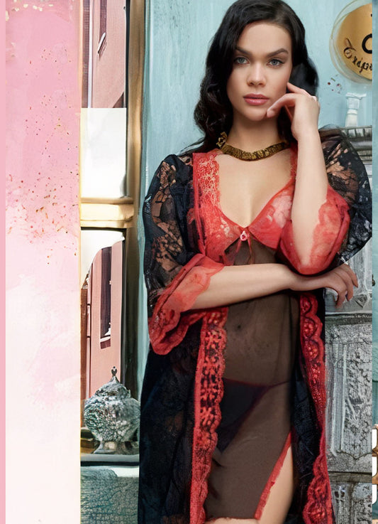 نفذت الكميةقميص نوم شيفون احمر 9081