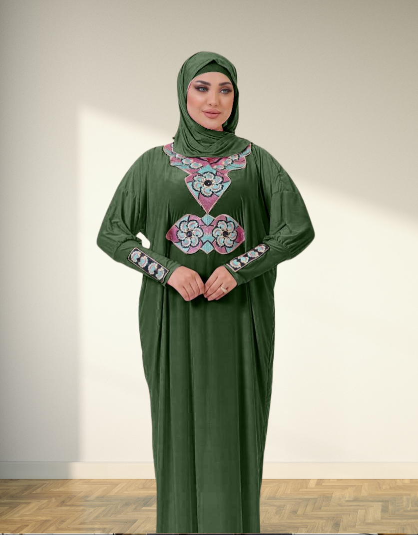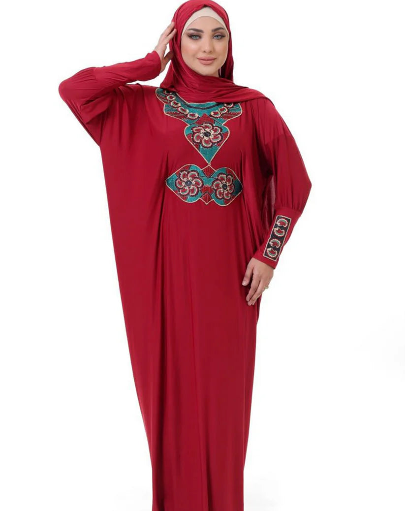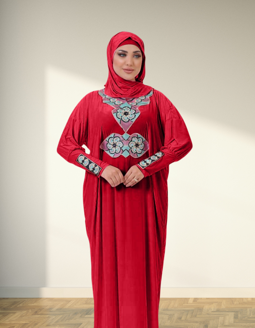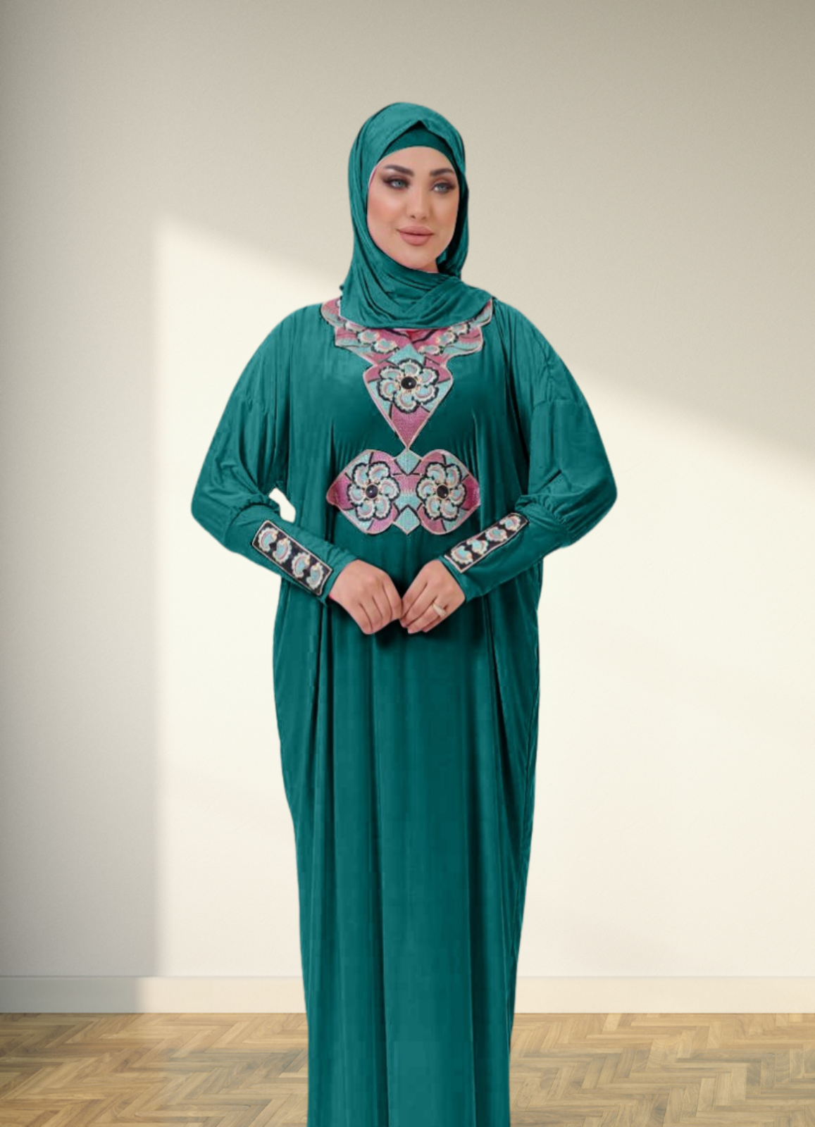 لا يوجد انسب واسهل منه لمشوار بجانب البيت أو أستقبال الضيوف، اسدال الصلاة بخامته الليكرا المريحة، و طرحته، بتصميم والوان عصرية و شيك، واسع وأنيق .