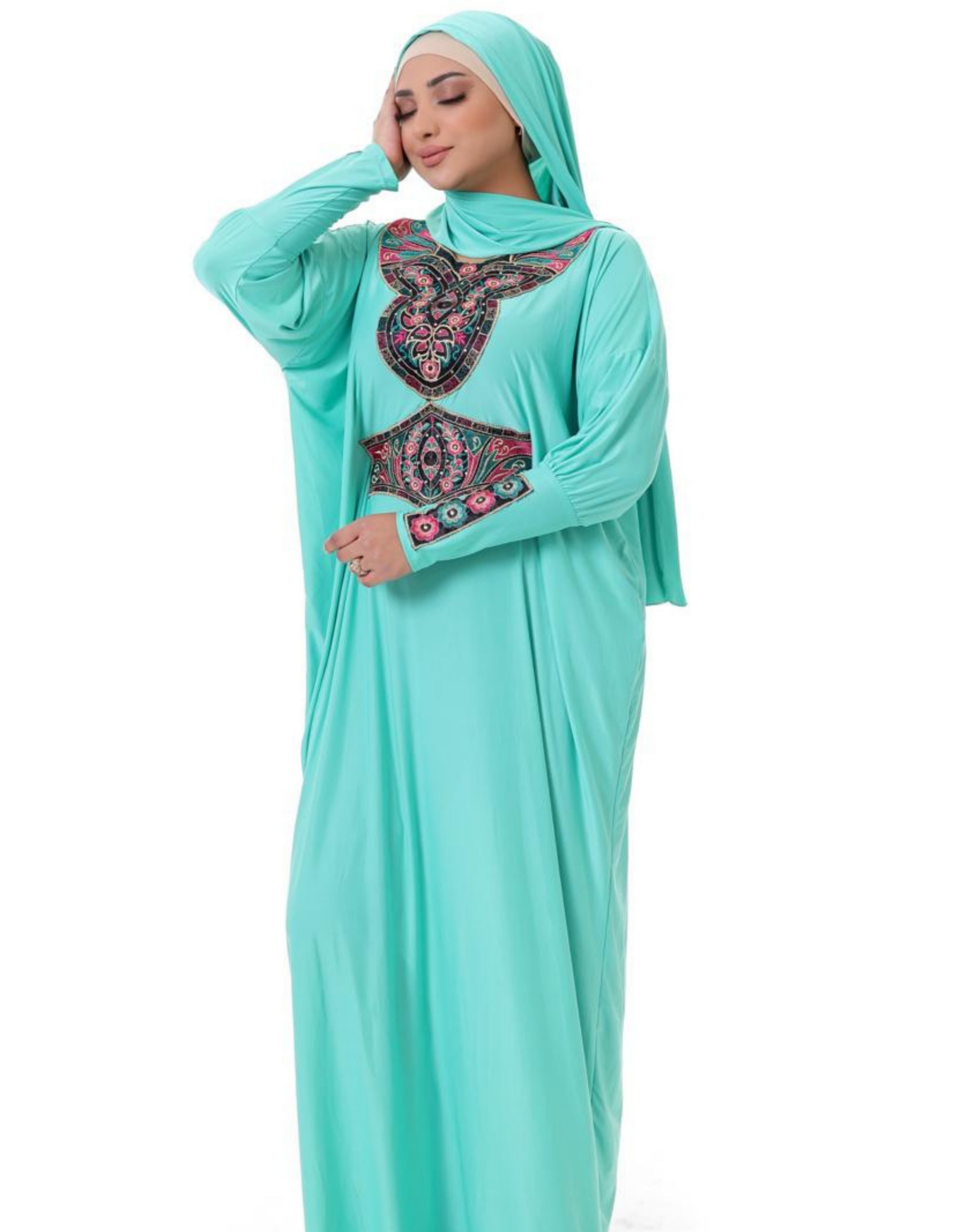 لا يوجد انسب واسهل منه لمشوار بجانب البيت أو أستقبال الضيوف، اسدال الصلاة بخامته الليكرا المريحة، و طرحته، بتصميم والوان عصرية و شيك، واسع وأنيق .