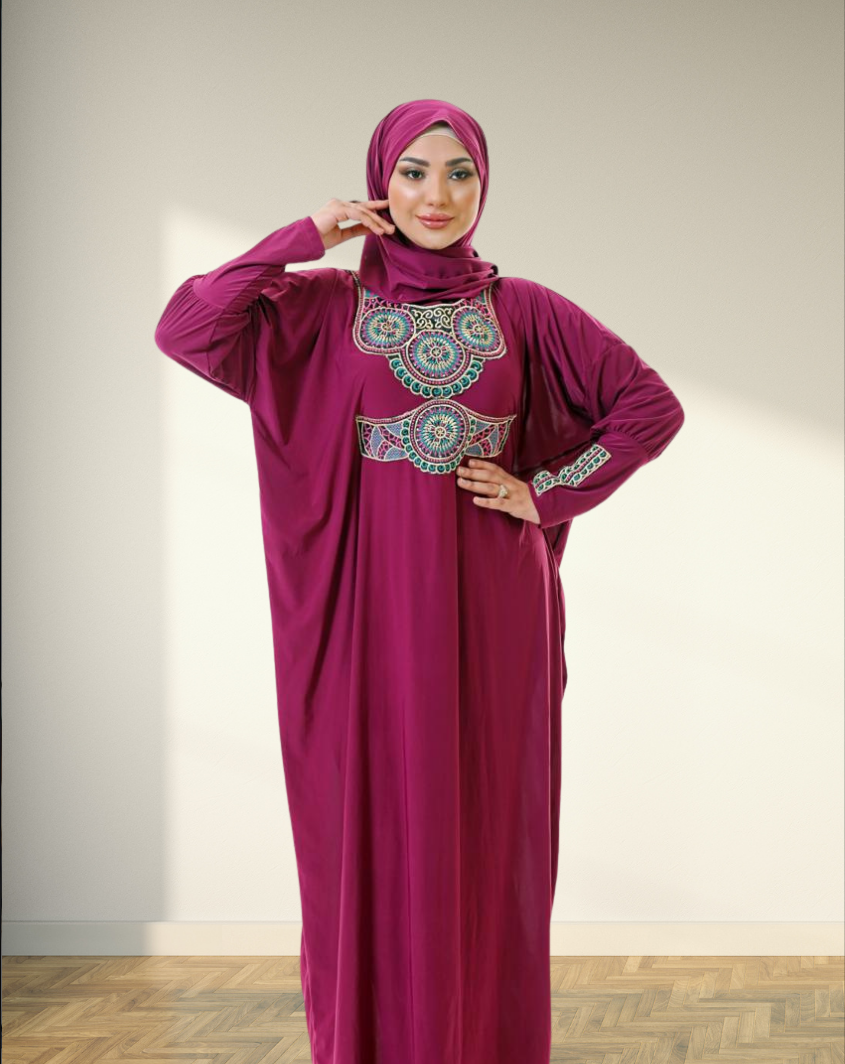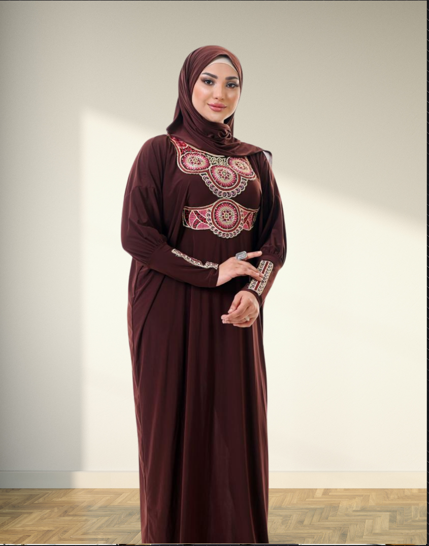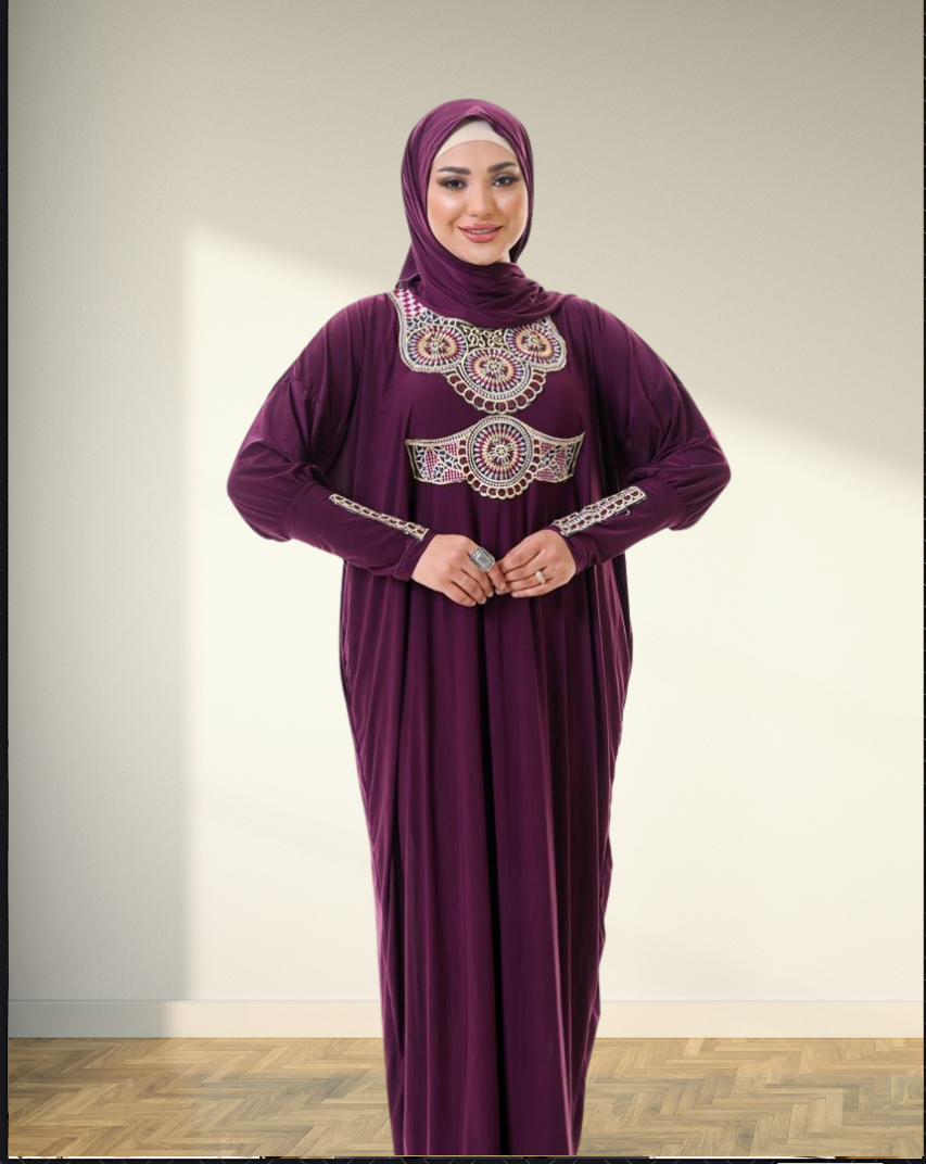 لا يوجد انسب واسهل منه لمشوار بجانب البيت أو أستقبال الضيوف، اسدال الصلاة بخامته الليكرا المريحة، و طرحته، بتصميم والوان عصرية و شيك، واسع وأنيق .