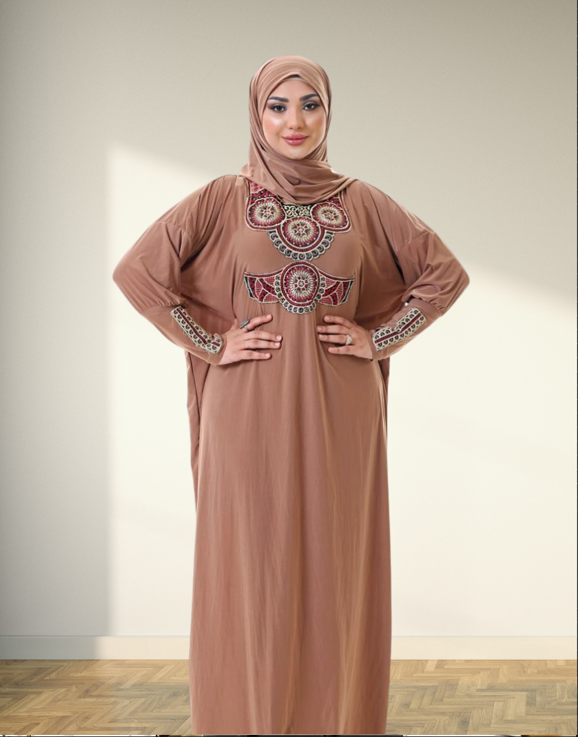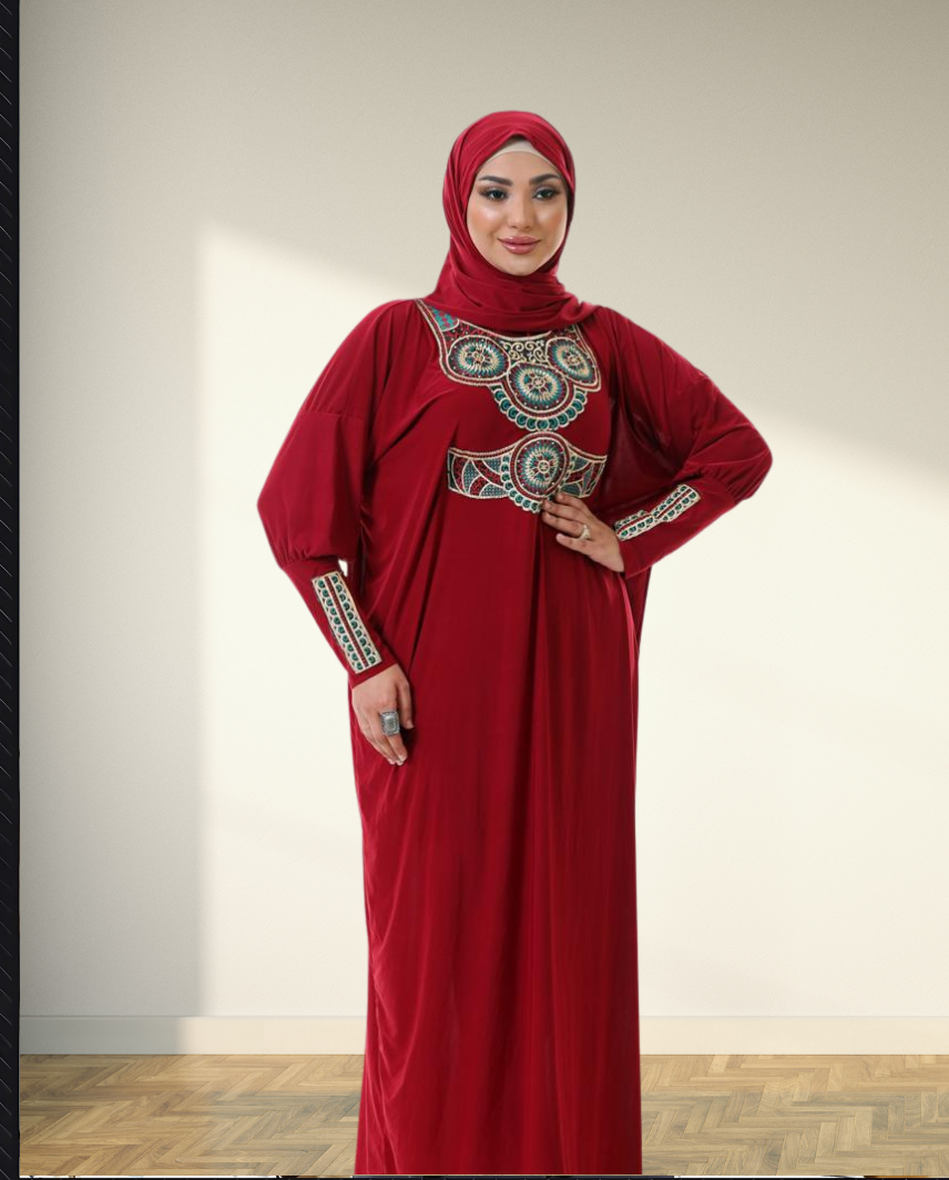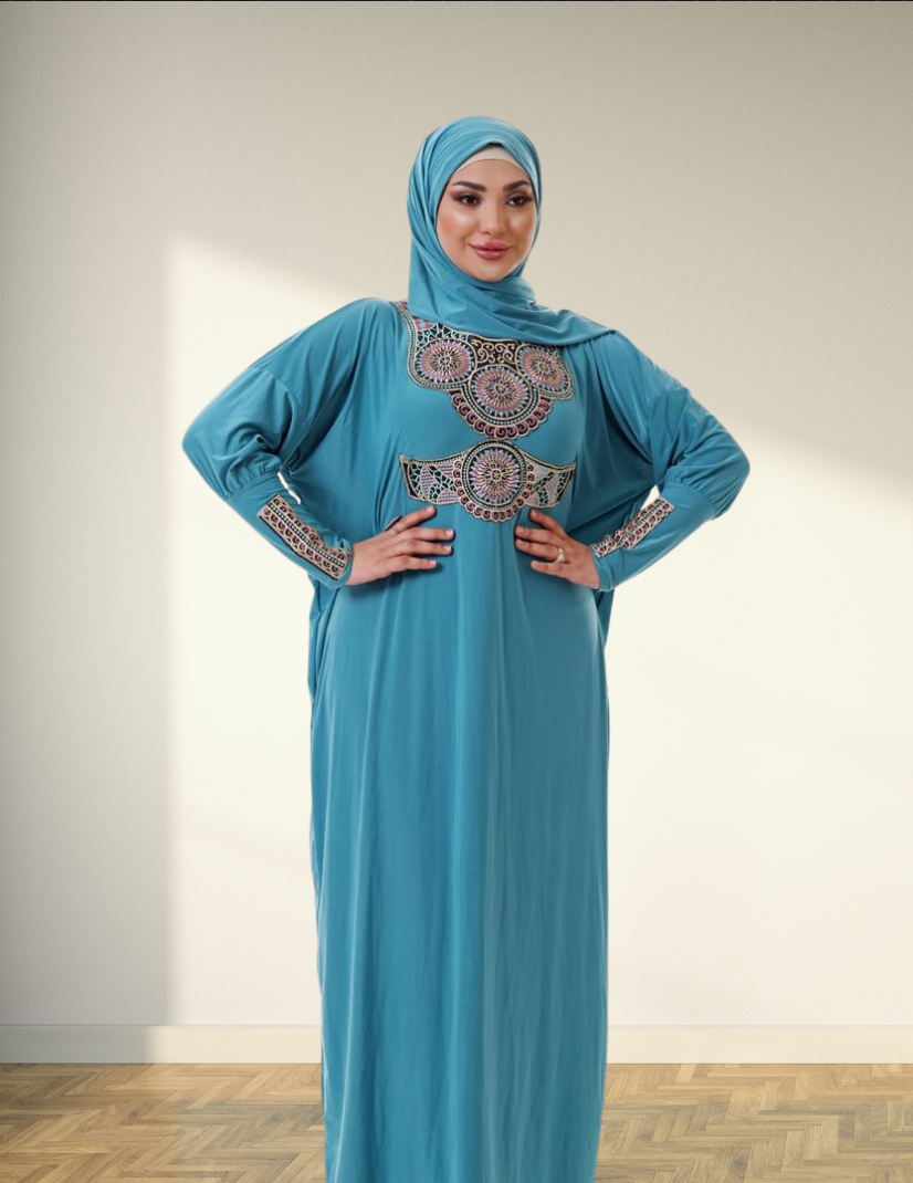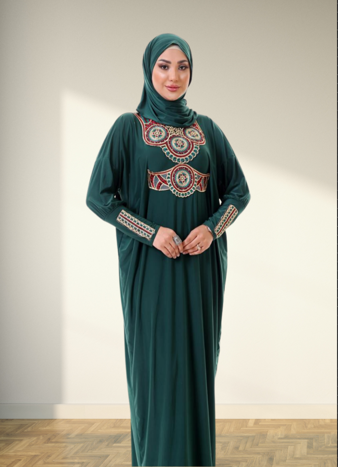لا يوجد انسب واسهل منه لمشوار بجانب البيت أو أستقبال الضيوف، اسدال الصلاة بخامته الليكرا المريحة، و طرحته، بتصميم والوان عصرية و شيك، واسع وأنيق .