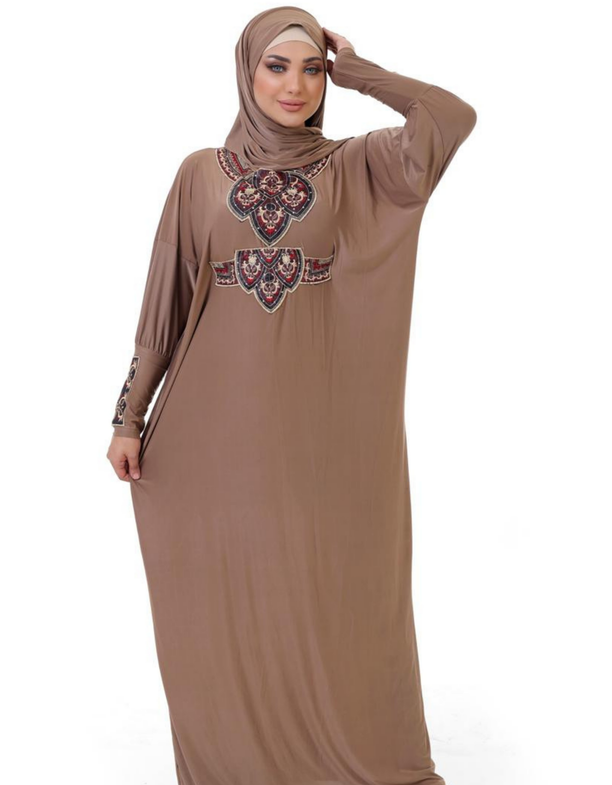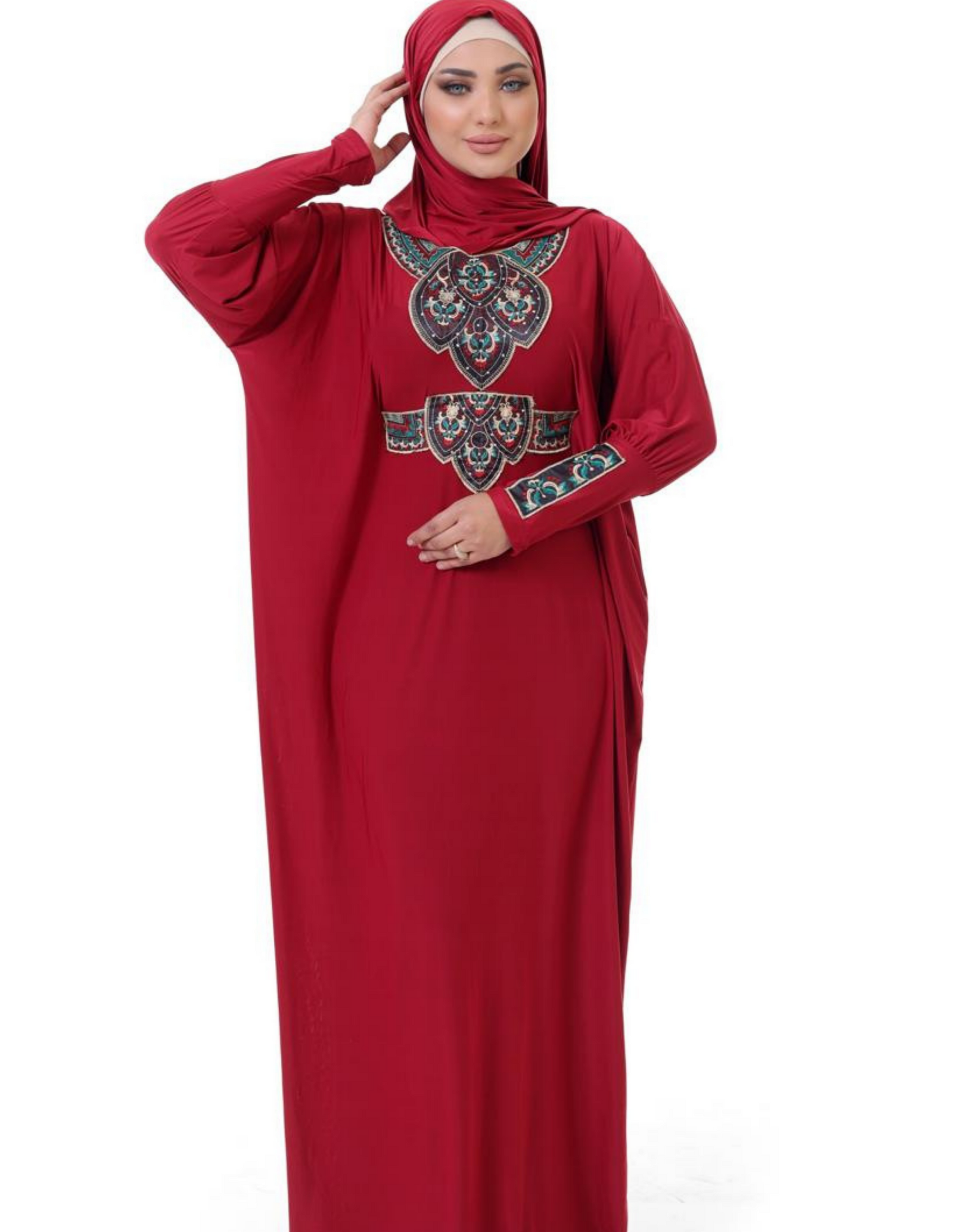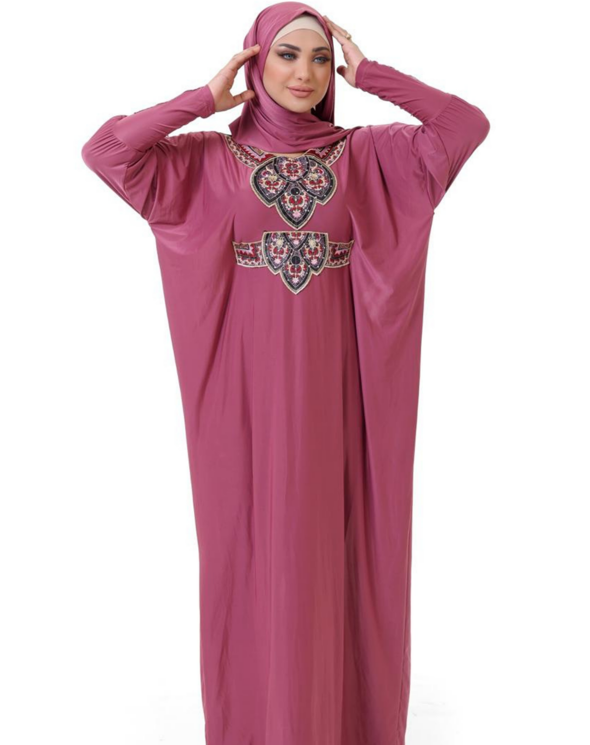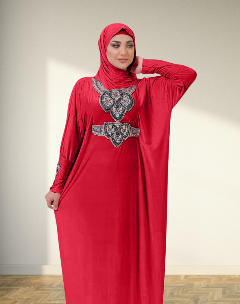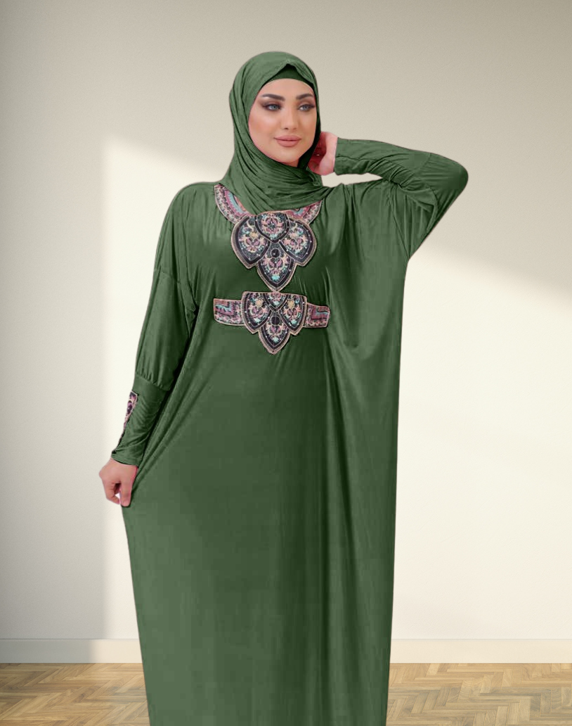 لا يوجد انسب واسهل منه لمشوار بجانب البيت أو أستقبال الضيوف، اسدال الصلاة بخامته الليكرا المريحة، و طرحته، بتصميم والوان عصرية و شيك، واسع وأنيق .