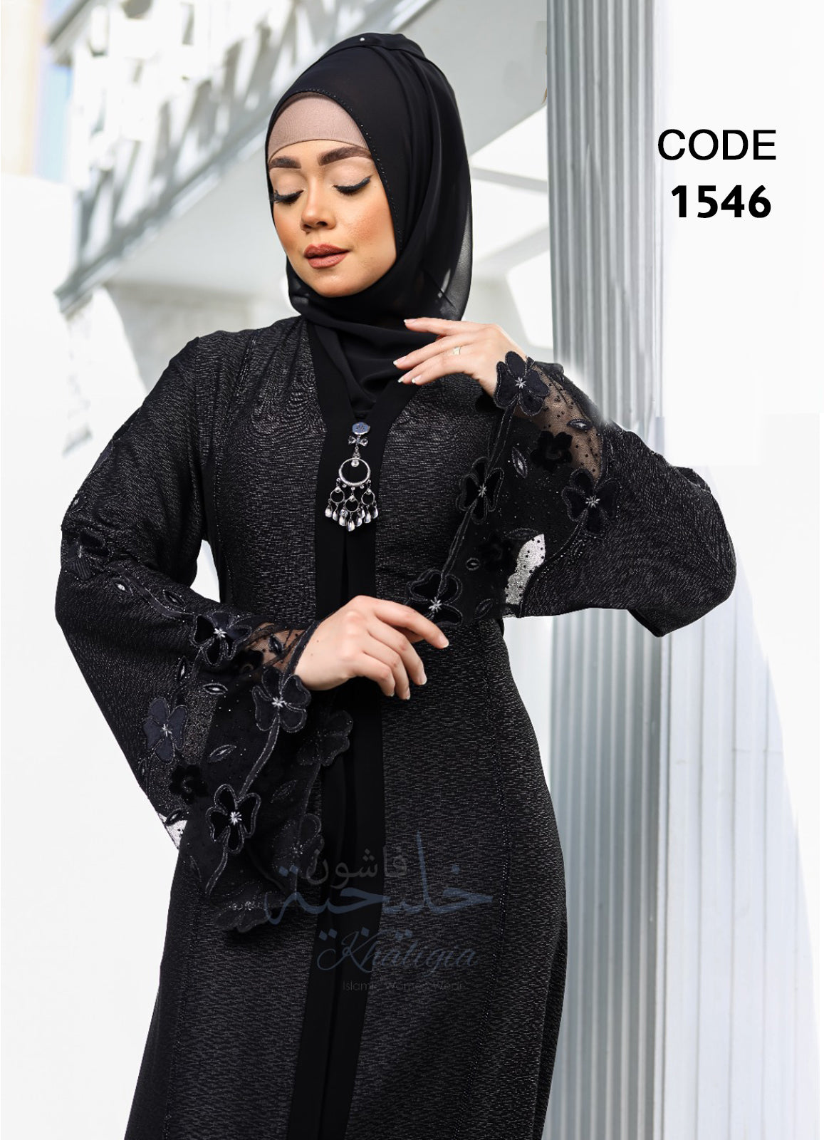 عباية خليجي سوداء حرير خروج حريمى كود 1546