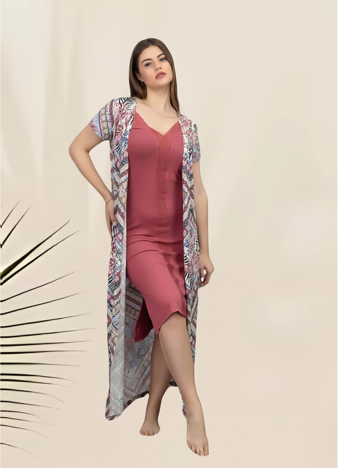 لمحبين الرفاهيه في البيت... فستان مع روب  ناعم  خامة خفيفه جدا و ناعمه لتحصلي علي الاحساس المنعش في عز الحر