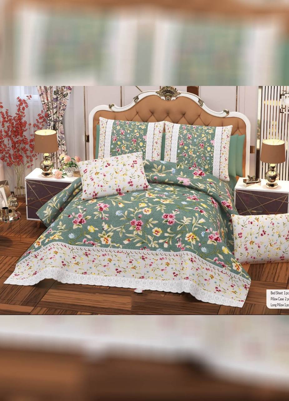مفرش سرير قطن اخضر منقوش 4 قطع