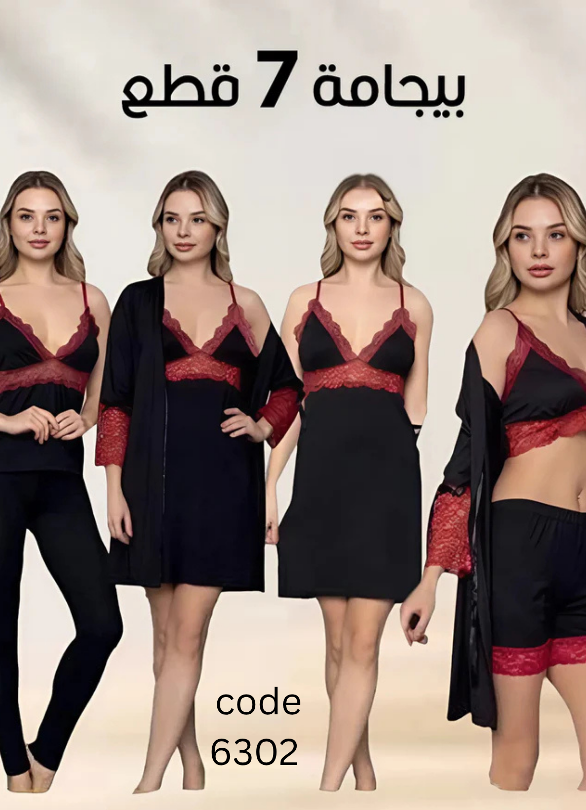 نوم بأناقة وراحة وجودة مع بيجامة 7 قطع! يتضمن هذا الطقم الراقي إطلالة وإحساس ملابس النوم العصرية. مصنوعة من أقمشة فاخرة لتجعلك مرتاحة طوال الليل وتتميز بسبع قطع مصنوعة بعناية ، لن تجدي مثل هذا الاسترخاء المدلل في أي مكان آخر